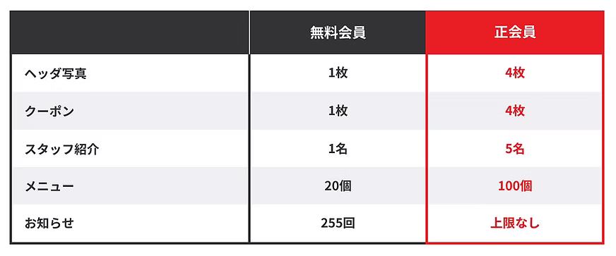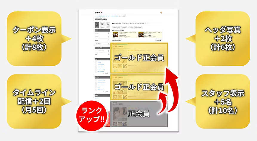 ゴールドプランとは、通常の正会員プランよりも機能の幅が増え、効果的に集客強化ができるプランです。